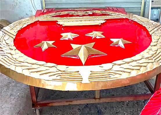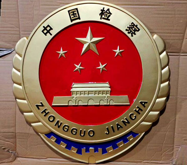 、警徽制作一定要開(kāi)規(guī)格大小一致的模具。 、采用304不銹鋼(此產(chǎn)品不上銹、強(qiáng)度高)進(jìn)行沖壓成型。 第三、用等離子把警徽四周切割下來(lái)